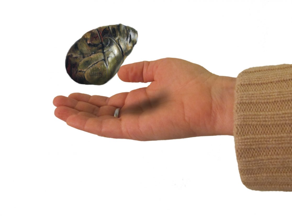 Since 2009, Majewski has been associatively following eight objects that are part of the Gimel World, her imaginary museum. One of these objects is The White Stone; both the stone and the basket that holds it come from her grandmother.