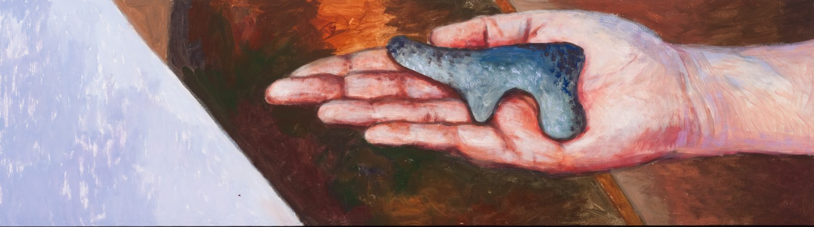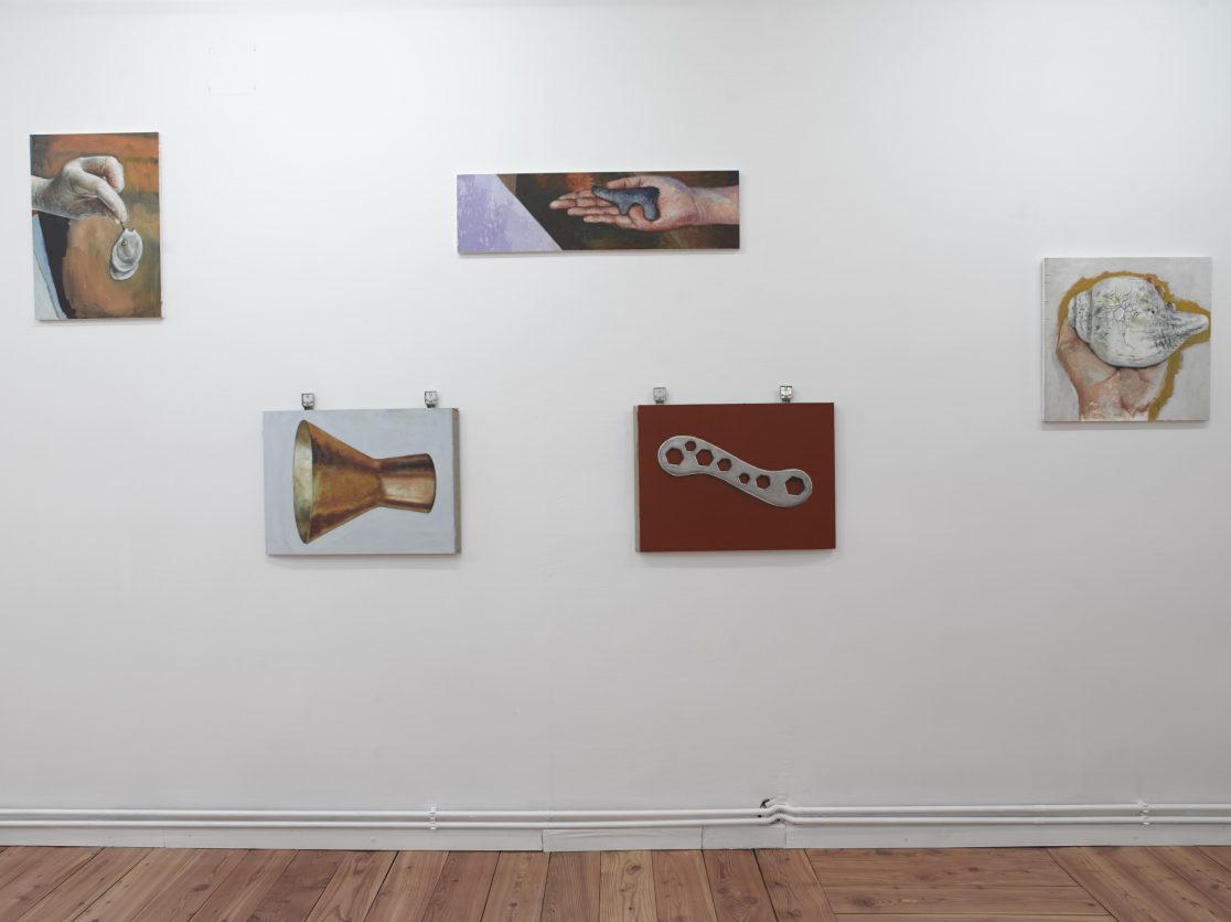 Life and work become inseparable, when looking at the objects Jeanne Mammen surrounded herself with. She collected many things, like stones, shells and other interesting objects, which resemble those in Antje Majewski’s studio today like twins. To match these objects is also an homage to a fellow female painter, an ancestor… The objects owned by Jeanne Mammen were held in the hand of the museum custodian, whereas Antje Majewski’s objects are held in the hand of the painter. The Doubles serve as Twins in this section.