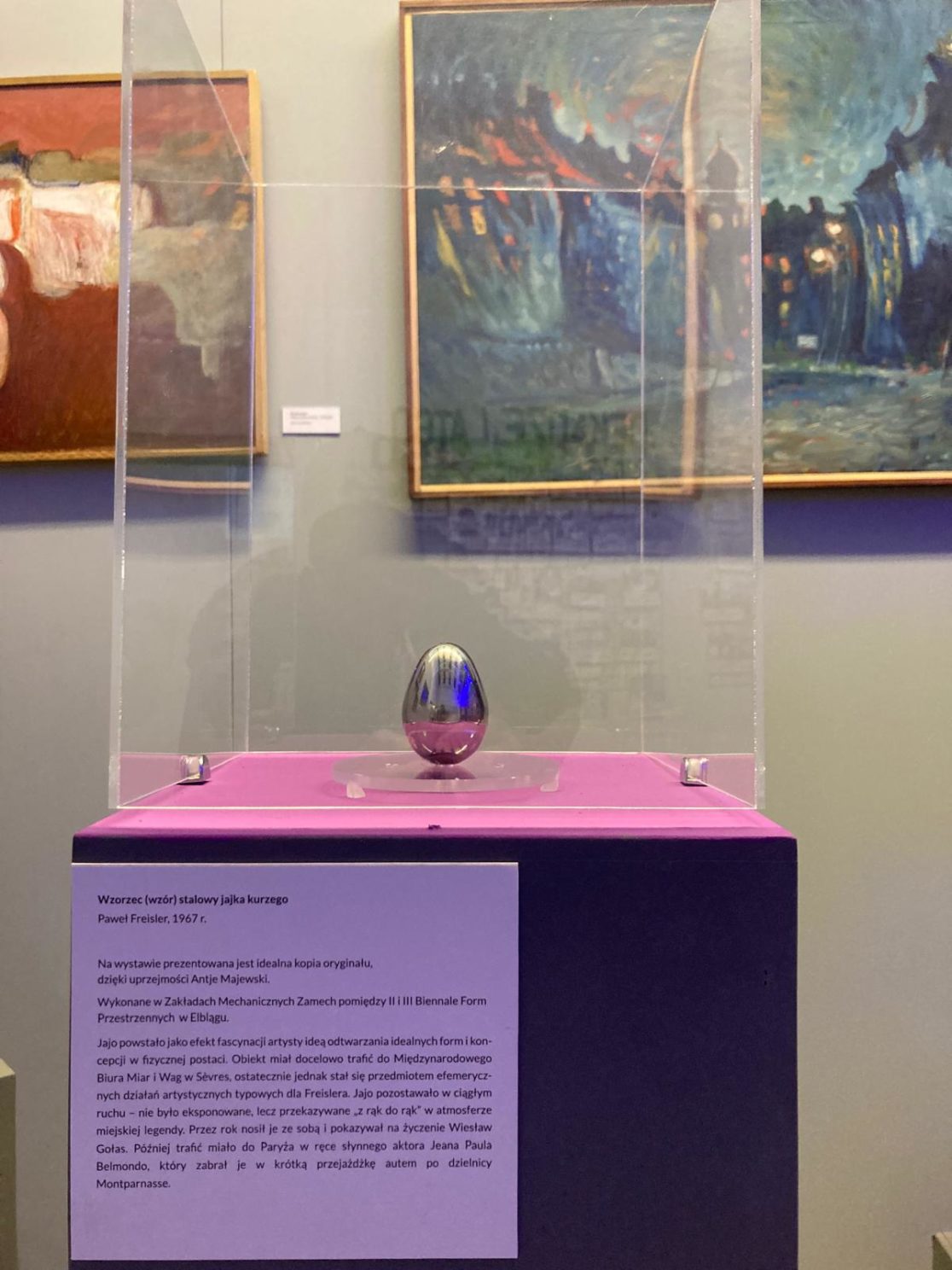 The original Wzorzec (wzór) stalowy jajka kurzego / Steel standard (sample) of a chicken egg (1967) was made at the Zamech Mechanical Factory between the 2nd and 3rd Biennale of Spatial Forms in Elbląg, 1967-69. The Egg returns to where it was made, but this exact copy is there for the first time. On Paweł Freisler’s request, The Egg is presented not in Gallery EL, but in the exhibition “What’s new? Elbląg in the 1960s” in Muzeum Archeologiczno-Historycznym w Elblągu. It’s return saves an important moment in Polish cultural history and heritage and opens it up for a NEW yet to come.