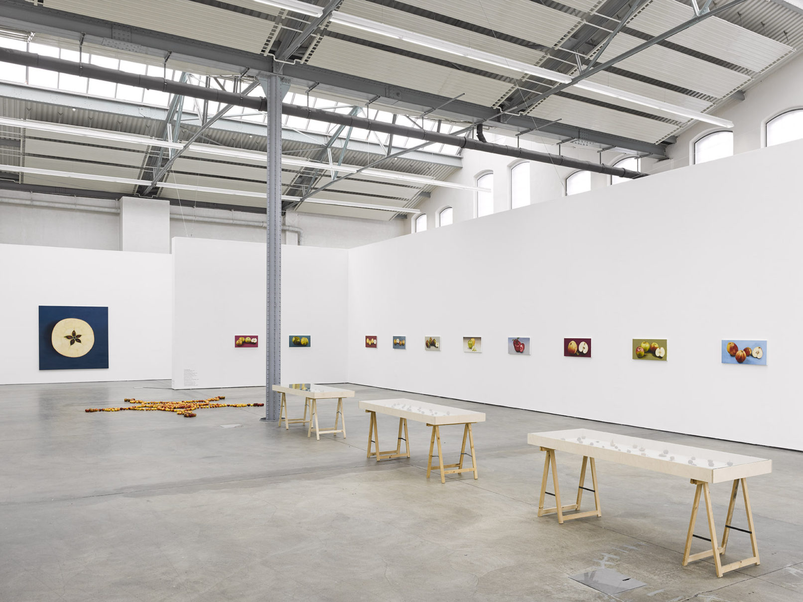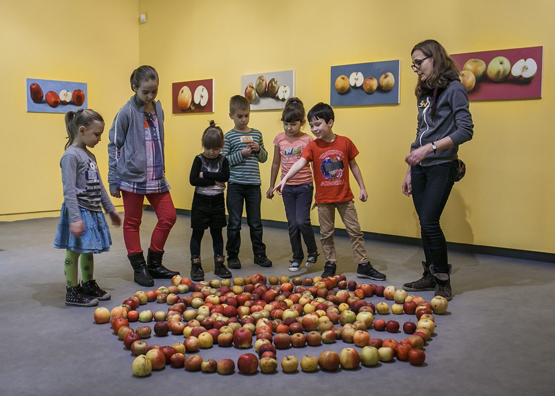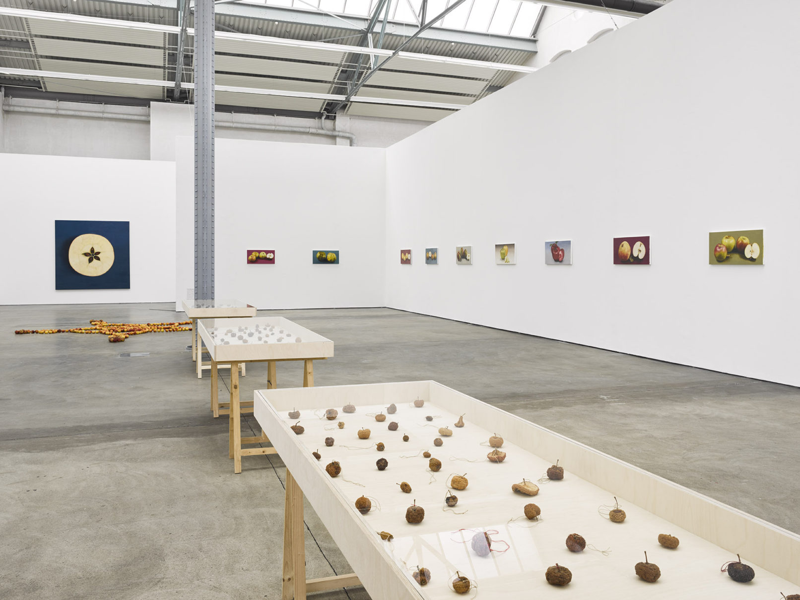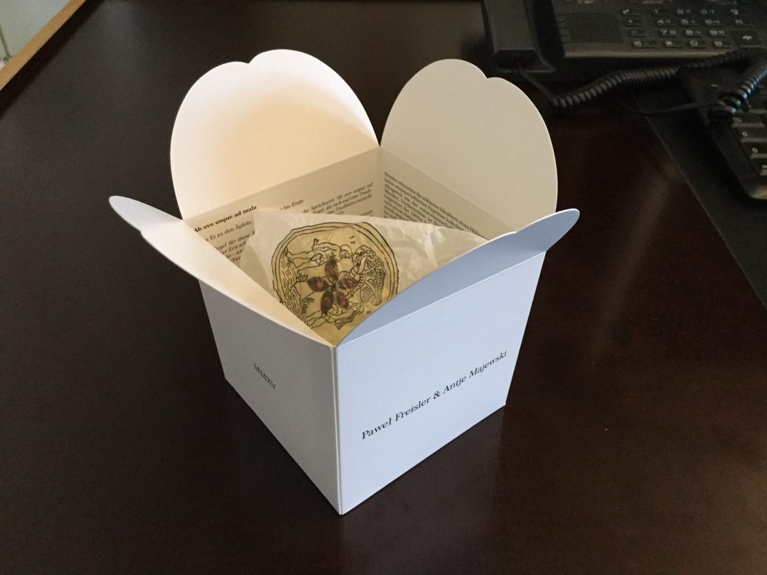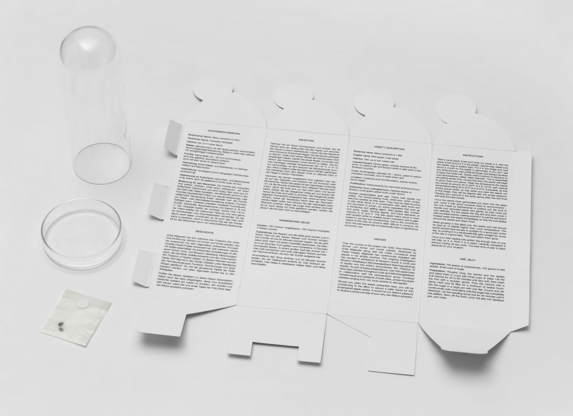 APPLE. AN INTRODUCTION. (OVER AND OVER AND ONCE AGAIN) centers around the apple as an art object and as a case study of biodiversity under threat. Sparked in the course of a five-year, ongoing correspondence between artist Antje Majewski and the elusive, legendary Polish conceptual artist Paweł Freisler, the project shows the incredible diversity of ornaments in Freisler’s carved natural apples; the diversity of color and form in Majewski’s painted apple varieties; while Majewski’s film “The Freedom of Apples” traces the fruit’s genetic reduction to a handful of commercially profitable varieties, an undertaking that requires making sense of the complex relationships behind global food production, developments in agricultural technology, politics, and cultural forces guiding the capitalist world economy.