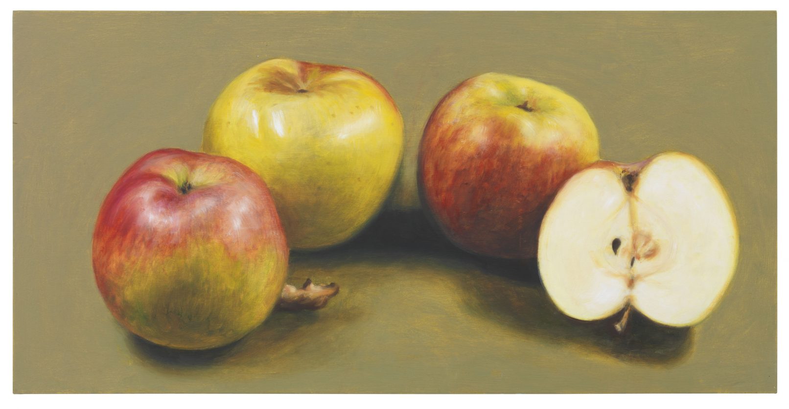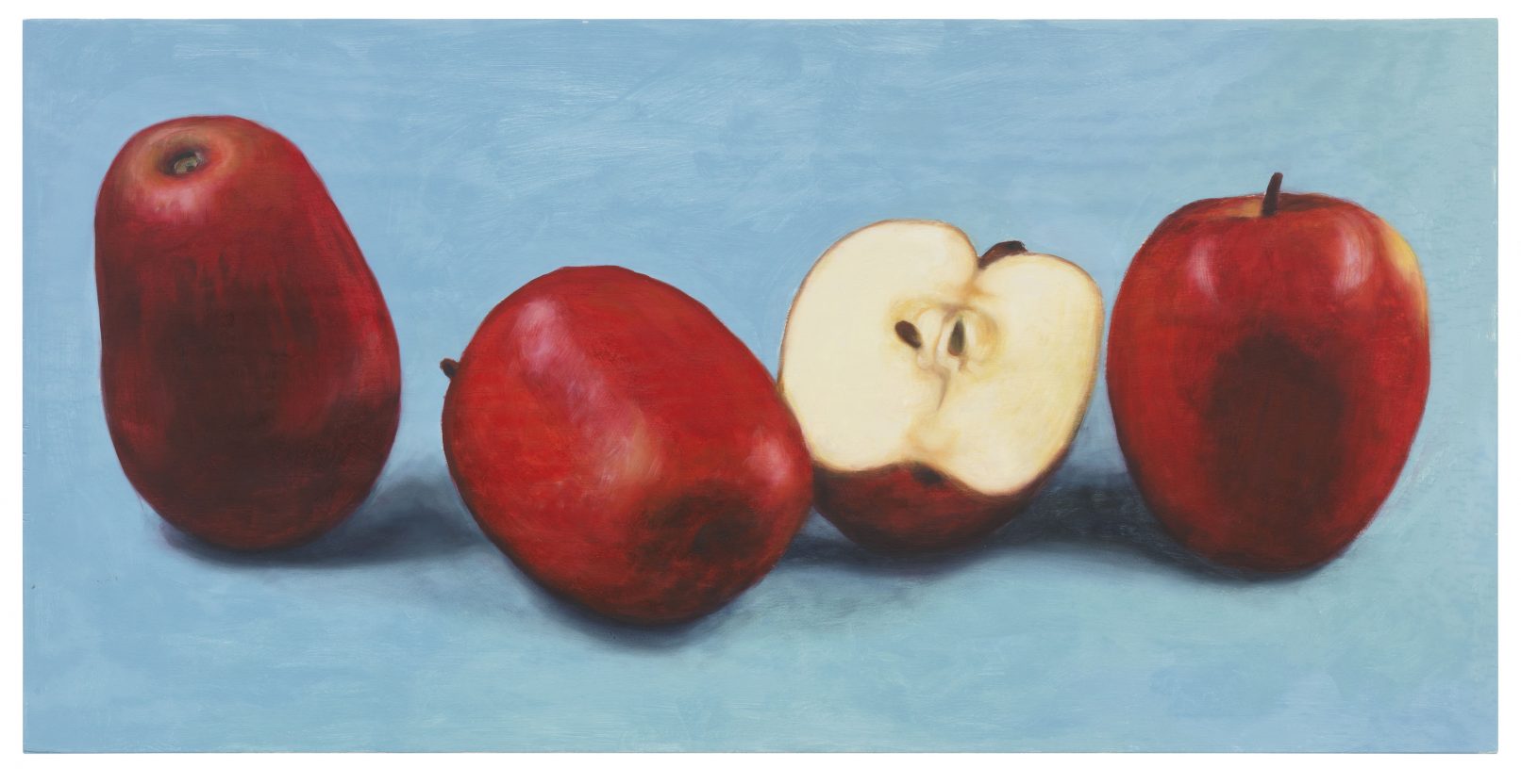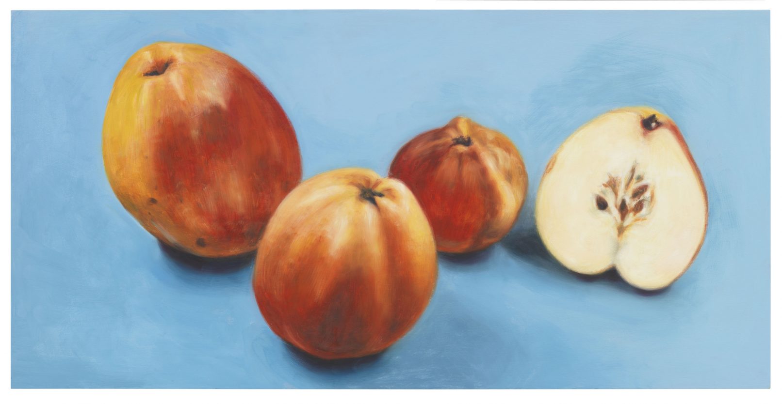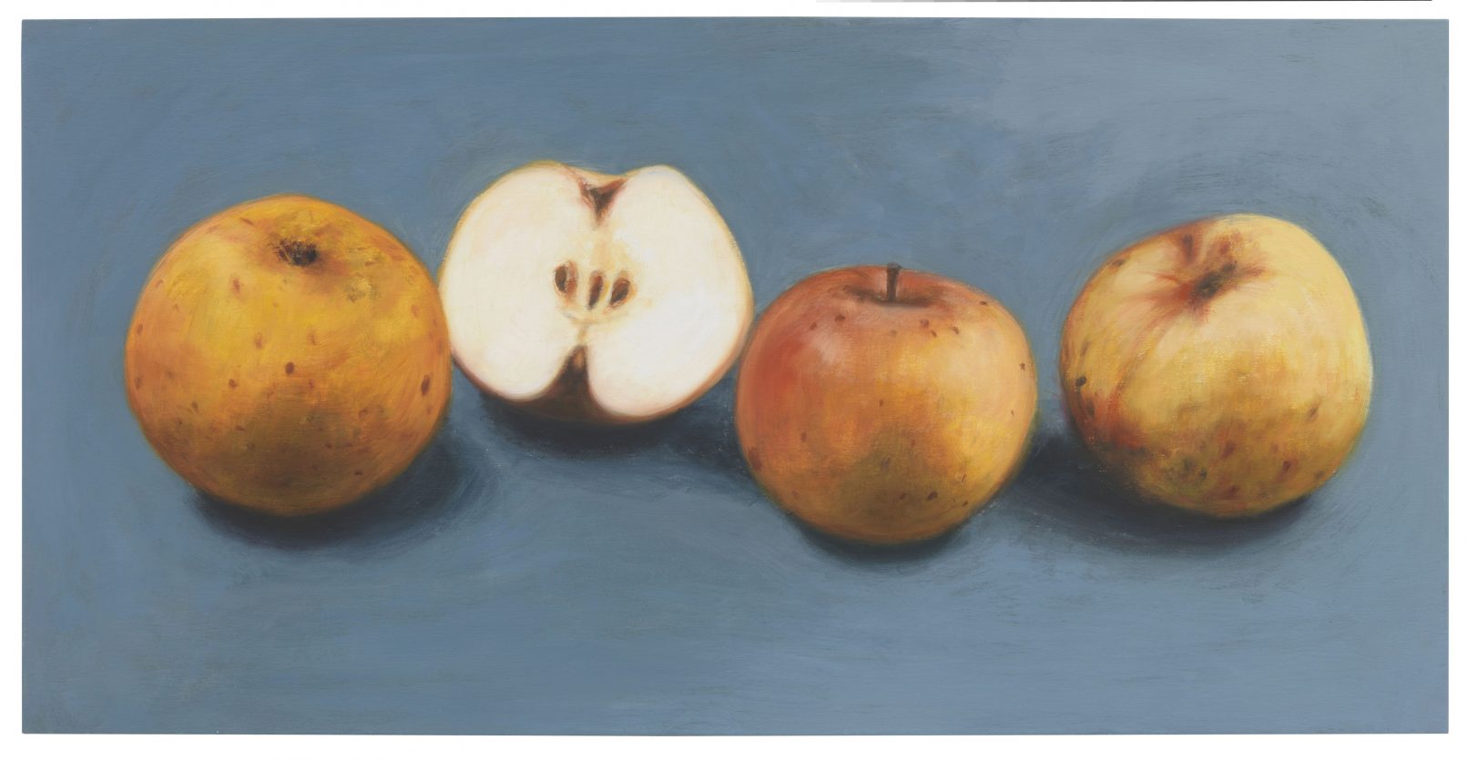 APPLE. AN INTRODUCTION. (OVER AND OVER AND ONCE AGAIN) centers around the apple as an art object and as a case study of biodiversity under threat. Sparked in the course of a five-year, ongoing correspondence between artist Antje Majewski and the elusive, legendary Polish conceptual artist Paweł Freisler, the project shows the incredible diversity of ornaments in Freisler’s carved natural apples; the diversity of color and form in Majewski’s painted apple varieties; while Majewski’s film “The Freedom of Apples” traces the fruit’s genetic reduction to a handful of commercially profitable varieties, an undertaking that requires making sense of the complex relationships behind global food production, developments in agricultural technology, politics, and cultural forces guiding the capitalist world economy.