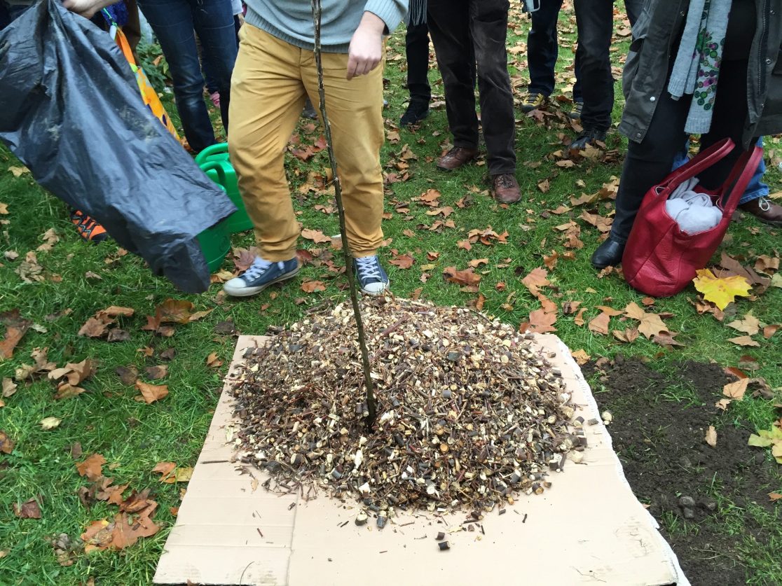 The artists proposed to start a new tradition of planting apple trees in the city space as a communal activity, bringing together diverse groups and individuals.