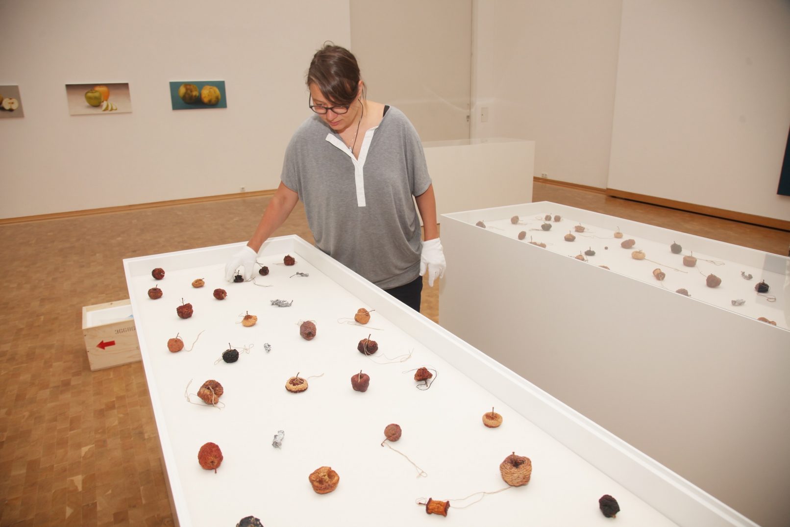 APPLE. AN INTRODUCTION. (OVER AND OVER AND ONCE AGAIN) centers around the apple as an art object and as a case study of biodiversity under threat. Sparked in the course of a five-year, ongoing correspondence between artist Antje Majewski and the elusive, legendary Polish conceptual artist Paweł Freisler, the project shows the incredible diversity of ornaments in Freisler’s carved natural apples; the diversity of color and form in Majewski’s painted apple varieties; while Majewski’s film “The Freedom of Apples” traces the fruit’s genetic reduction to a handful of commercially profitable varieties, an undertaking that requires making sense of the complex relationships behind global food production, developments in agricultural technology, politics, and cultural forces guiding the capitalist world economy.