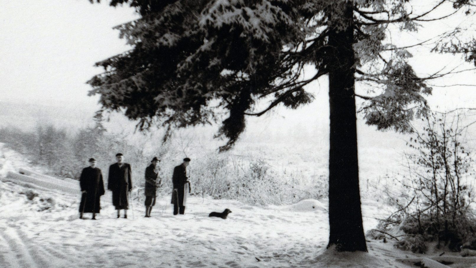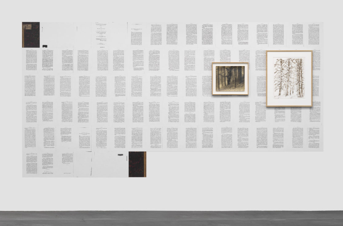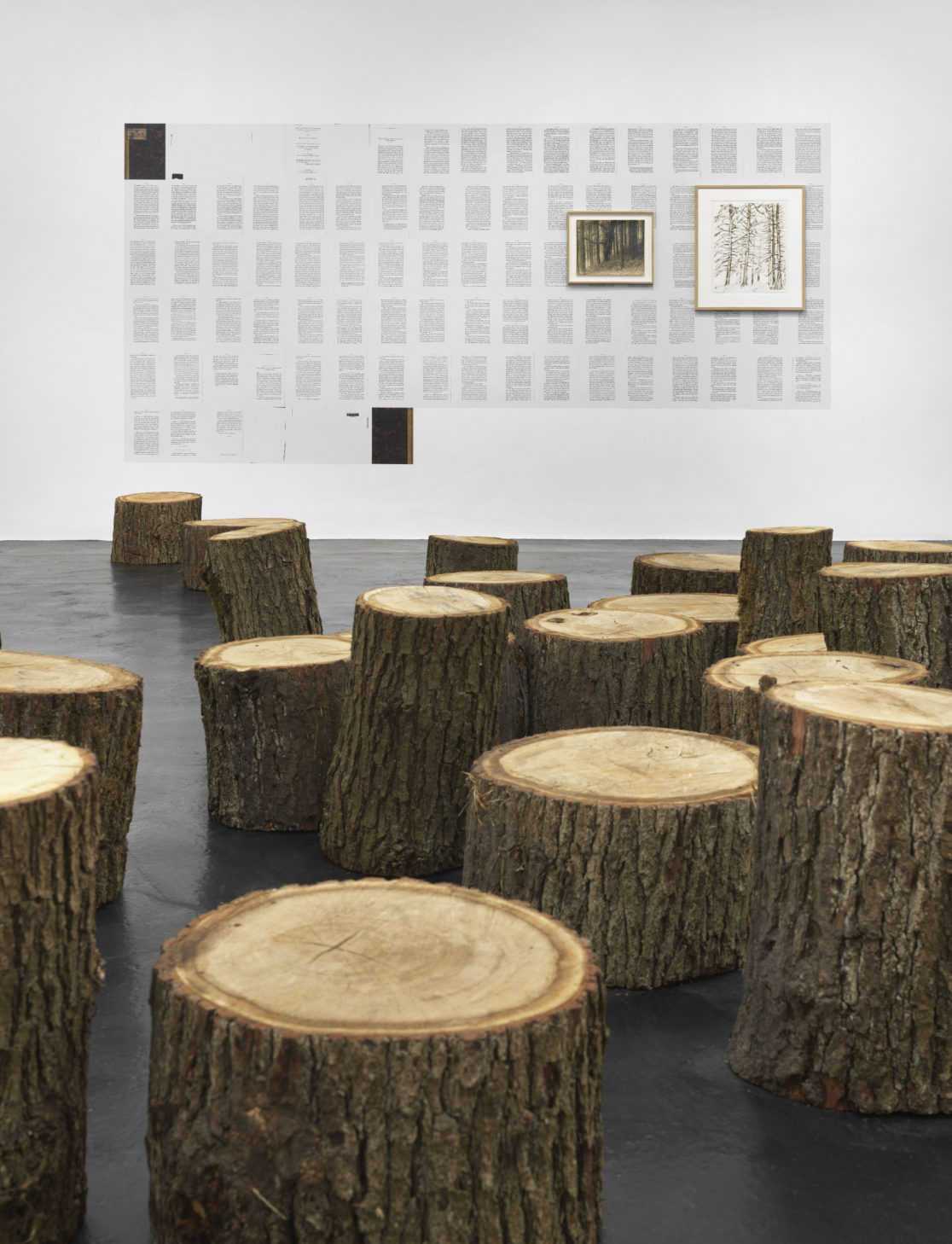 Also part of the exhibition is a reproduction of Karl Leberecht Krutzsch’s 1825 study of the bark beetle, an original photograph by Heinrich Krieger and an ink drawing of a forest by Majewski’s grandmother Helga Liebe (1918–2011). The Tharandt Forest is home to the burial plot of Heinrich Cotta (1763–1844)—the founder of Germany’s first forestry university. Majewski’s film shows the monumental oak trees that surround his gravesite. These were planted to honor his 80th birthday, and Karl Leberecht Krutzsch recounted the festivities to his son in a lighthearted letter from 1843. This letter has been printed as a poster for the show at neugerriemschneider.