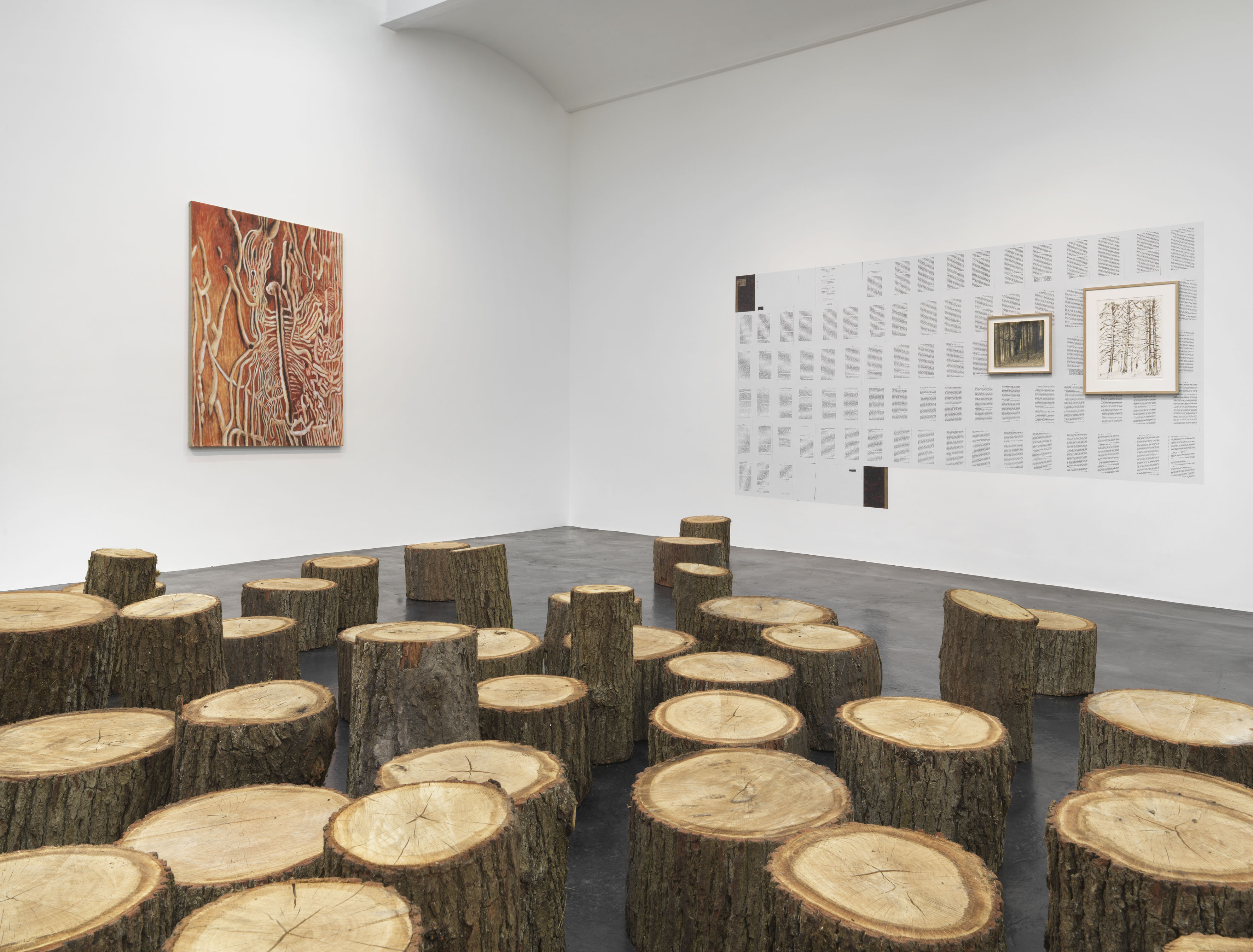In Der Wald (The Forest), Antje Majewski shifts her often globally oriented focus to a more local ecosystem—one currently being threatened by human intervention. Serving as the points of departure for these new paintings and video works are the central European forests endangered by recent summers’ record high temperatures. The exhibition is closely intertwined with the artist’s family history and highlights the generationspanning nature of the forest and its symbiotic relationship to humankind.