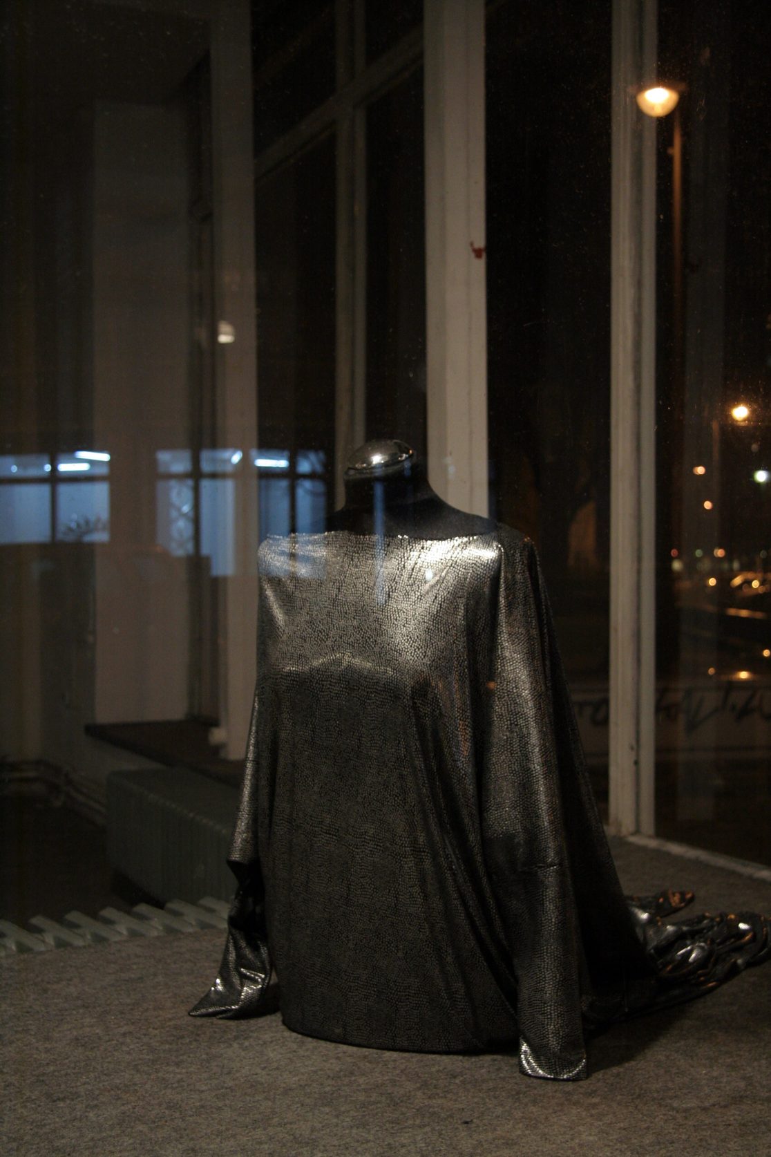 Two strange creatures come out of the canal at Westhafen, near “Wedding”, one of Berlin’s seediest districts. Their shiny costumes twinkle in the early morning light and the noise of the streets becomes louder as they continue to crawl on the ground: up to the street, over a bridge, across crossroads and past cars, until finally vanishing again behind a concrete ramp.
