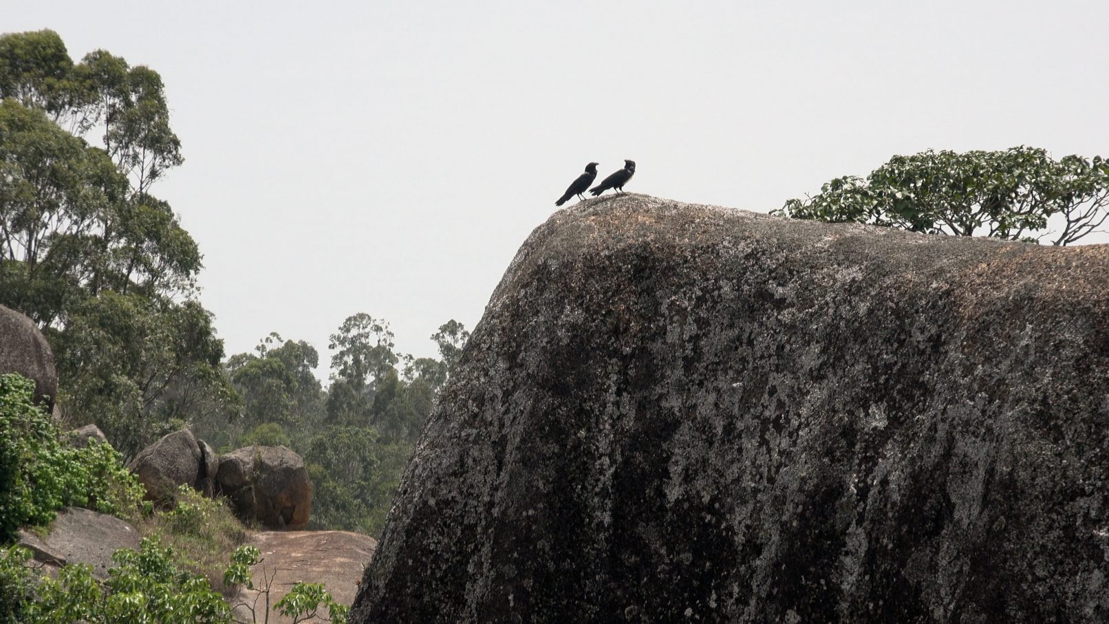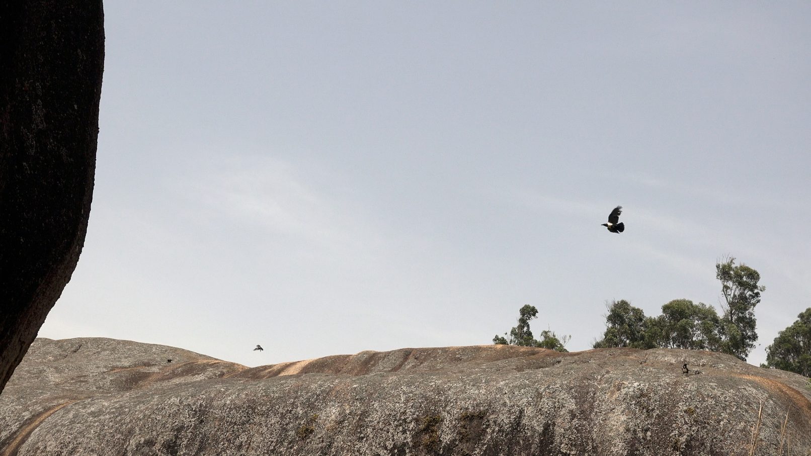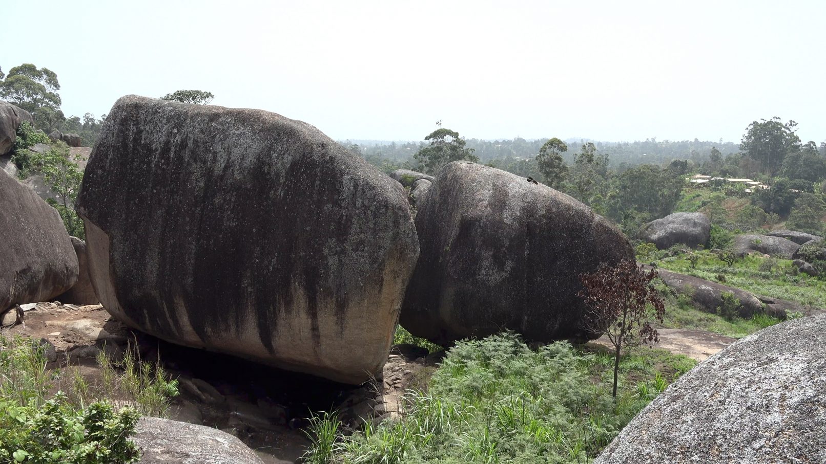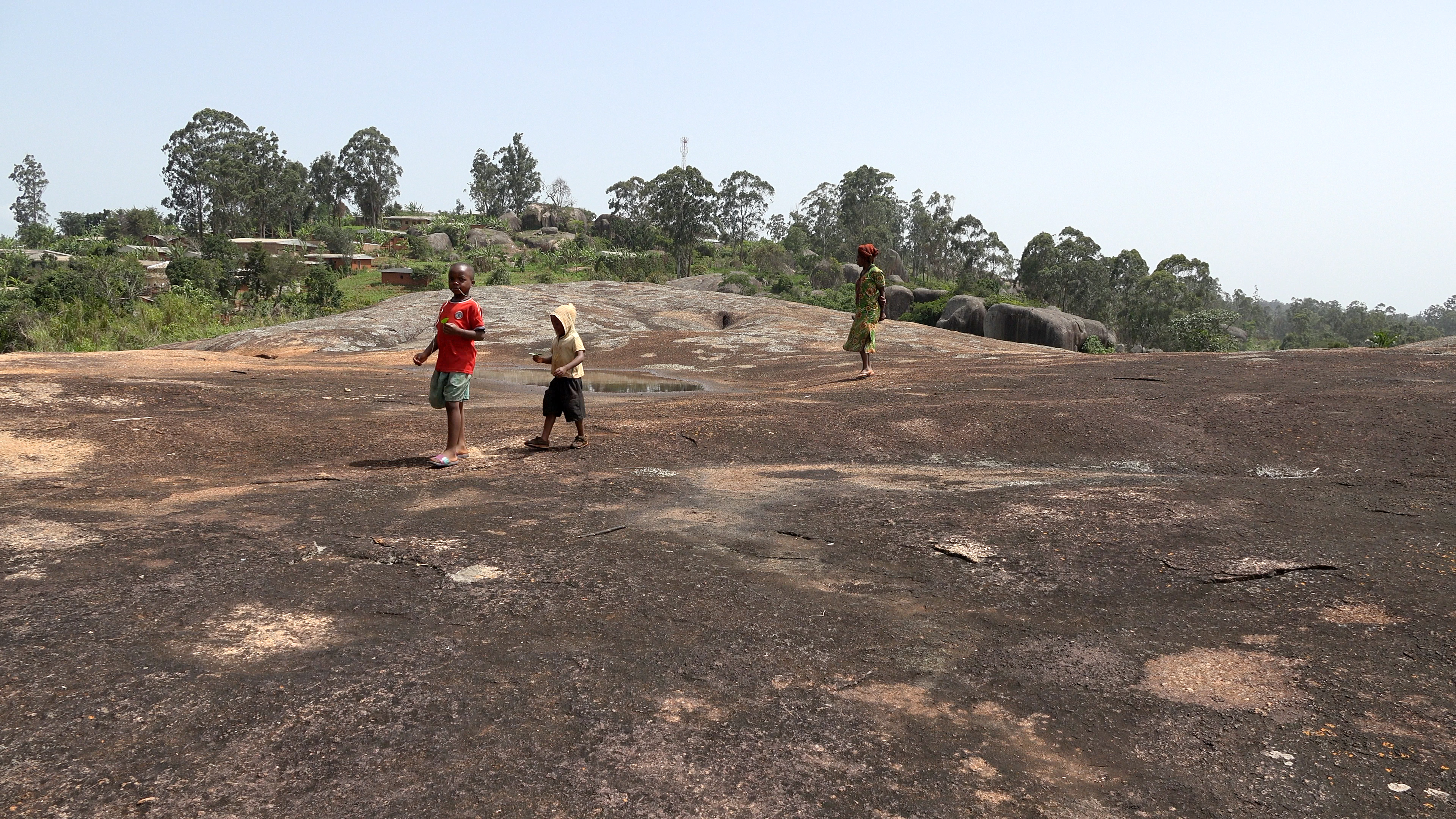 Antje Majewski’s film Les Oiseaux de Cameroun (The Birds of Cameroon, 2017) was recorded in a sacred place in Cameroon known as the Grotte Fovu. The gigantic rocks are surrounded by banana trees, mangoes, eucalyptus, avocados; its most frequent visitors are the birds that come there to eat the offerings left by pilgrims. Another sacred site is the waterfall of Métché, in which many insurgents died, who were thrown to death by the French. Again we see offerings on the ground as well as a chicken running away freely. It could have been used in the ritual of “Ngop Boù”, in which a chicken rests on the head of a young person to mark his or her coming of age, the beginning of fertility.