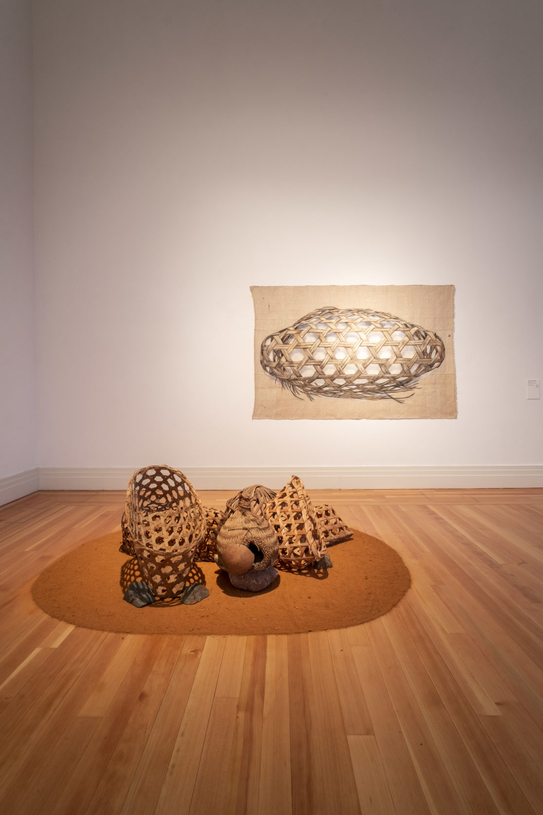 The film is shown together with an installation of chicken baskets, partly from an ethnographical museum, partly bought by Olivier Guesselé-Garai on a local market in West Cameroon. The baskets are used to carry chicken home from the market alive.