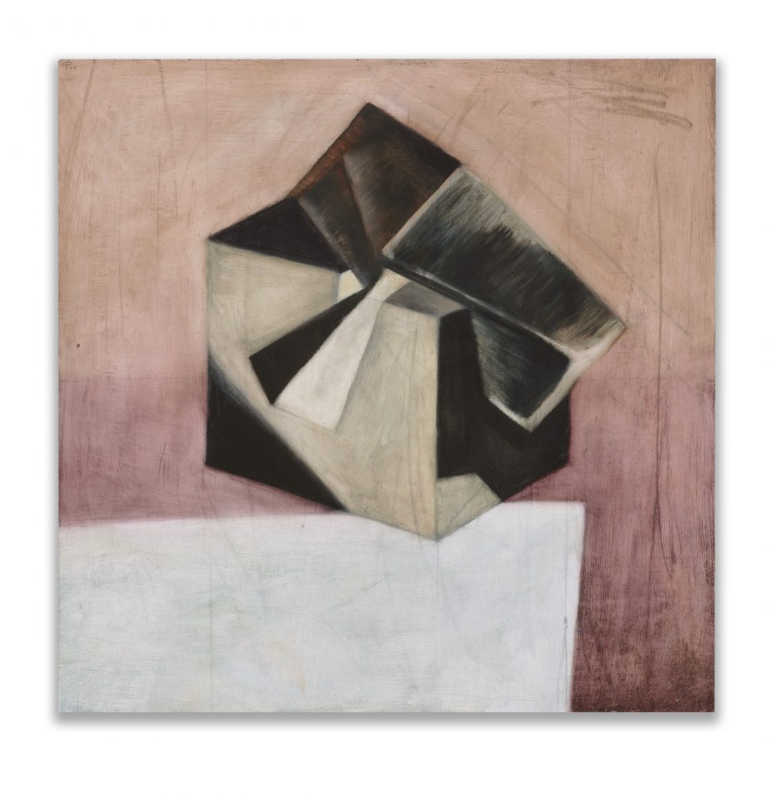Bergleute (Miners), a photo collage, shows two miniature miners being discovered by a girl that doesn’t seem very real herself. The miners were from a mineralogical collection of the University in Guanajuato. It was also in where I also found the Pyrit (Pyrite). [7] Even nowadays a lot of people believe crystals to be somehow full of a life of their own, probably due to the fact that they seem to grow by themselves according to an inner law, like we do [8]. And the idea that their movements are so slow, their “lifespan” is so incredibly long, make them seem almost god-like. [9] I had been collecting stones and shells for a while; I was interested in crystals, because they are the only natural objects that actually conform to the cubist’s ideas. They are the direct opposite of Twigs. Where crystals form essential three-dimensional objects, twigs are lines that’s spatiality is so difficult to paint that it becomes almost as impossible as painting sand (tiny dots). Since I wanted to try to leave the use of photos more and more behind, and to explore other possibilities of depicting reality, a pyrite was very good testing ground for a representation of the volume of things[10].