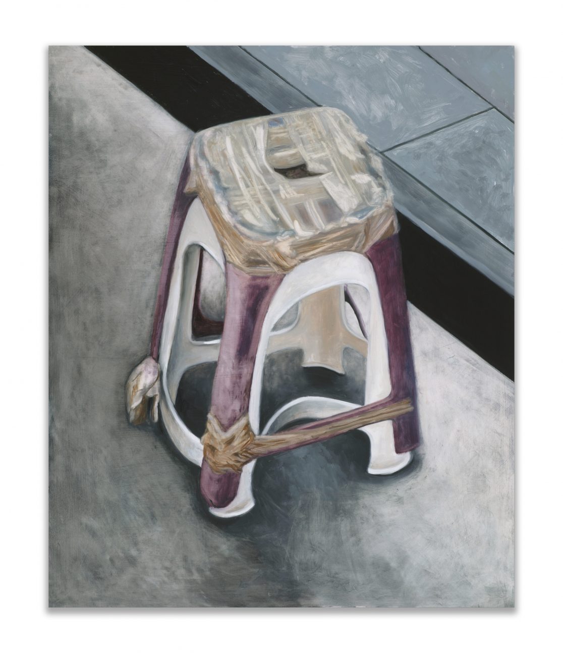 This could of course just as well be exercised on a man-made object like the Zwei Plastikhocker (Two Plastic stools) that had been bandaged with tape to hold together. Here I tried to work with parallel perspective. The fact that someone had taped them as if they had a broken leg and chest, like an animal or human being cast some spell on them, as if something had to feel pain in order to belong to the world of the living. Someone had taken care of them.