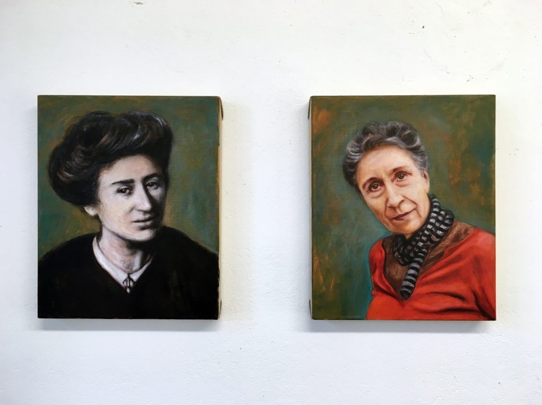 The question as to how the relationship between theory and practice of brotherly love should look is something we have to ask ourselves even today. In Antje Majewski’s work, Rosa Luxemburg and Silvia Federici assume the iconographic position of Luther and Erasmus of Rotterdam as they appear in paintings by the Cranach workshop. Contemporary Polish philosopher Ewa Majewska becomes Eve, who gives the viewer the apple: the fruit of knowledge about good and evil. Planted in front of the window are specimens from Rosa Luxemburg’s herbarium, recalling Rosa’s compassion for all living things, along with two apple trees: one of the “Martin Luther” species, and a wild European apple that is threatened with extinction. The alleged quote by Martin Luther that an apple tree should be planted before the end of the world is a twentieth century invention. But perhaps we should plant apple trees to prevent the end of the world? Antje Majewski’s contribution is a contemplation of self-empowerment through knowledge and “active sisterly / brotherly love” in the age of capitalism. This brother could also be an apple tree or a weed.