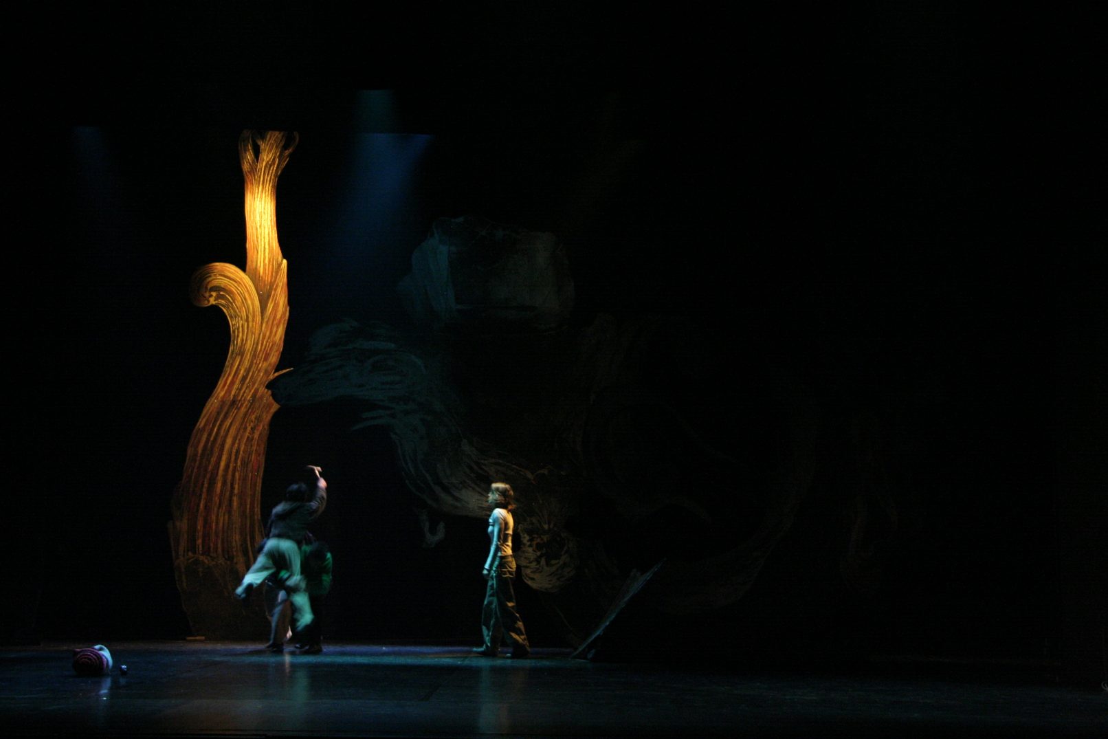 A new version of the dance theatre play was developed by Antje Majewski in close collaboration with the dancers, based on a libretto by Sebastian Cichocki. It takes places in an imaginary underground world of the mines, in which a young man encounters Skarbek in different manifestations: as a young boy, played by a marionette, and a very old man. The young man is seduced by the dancing treasures of the earth. Gold and Silver appear only to disappear again, while he is trying to catch them. When he finally breaks down, Skarbek reappears to teach him to embrace his own organic nature, his mortality. Digital projections create a hallucinatory atmosphere, in which loss of space, asphyxia, death and rebirth are experienced by dancers and auditorium.