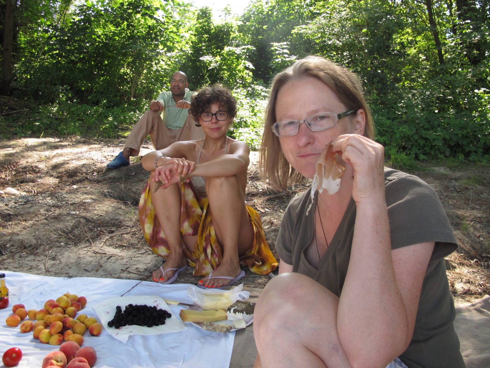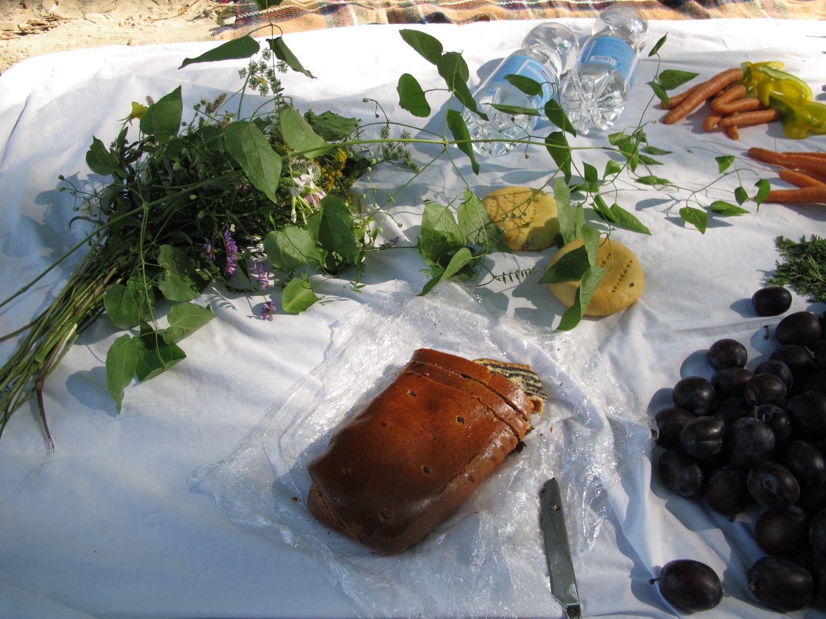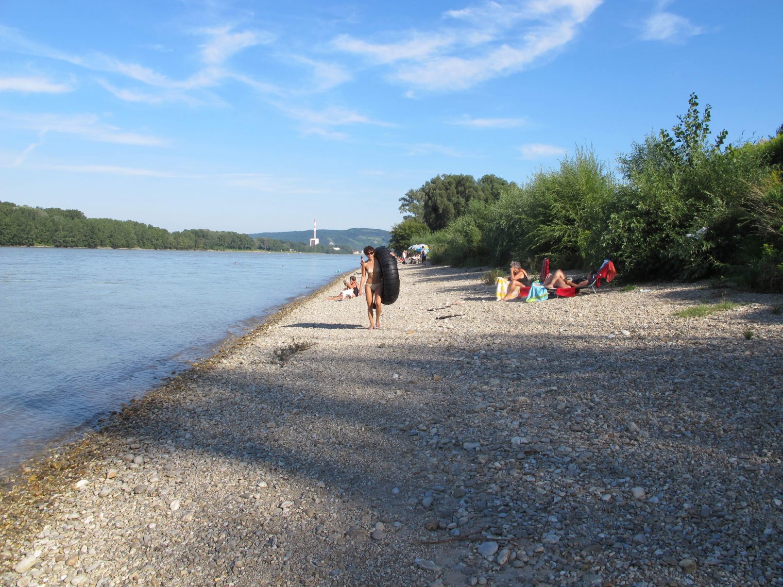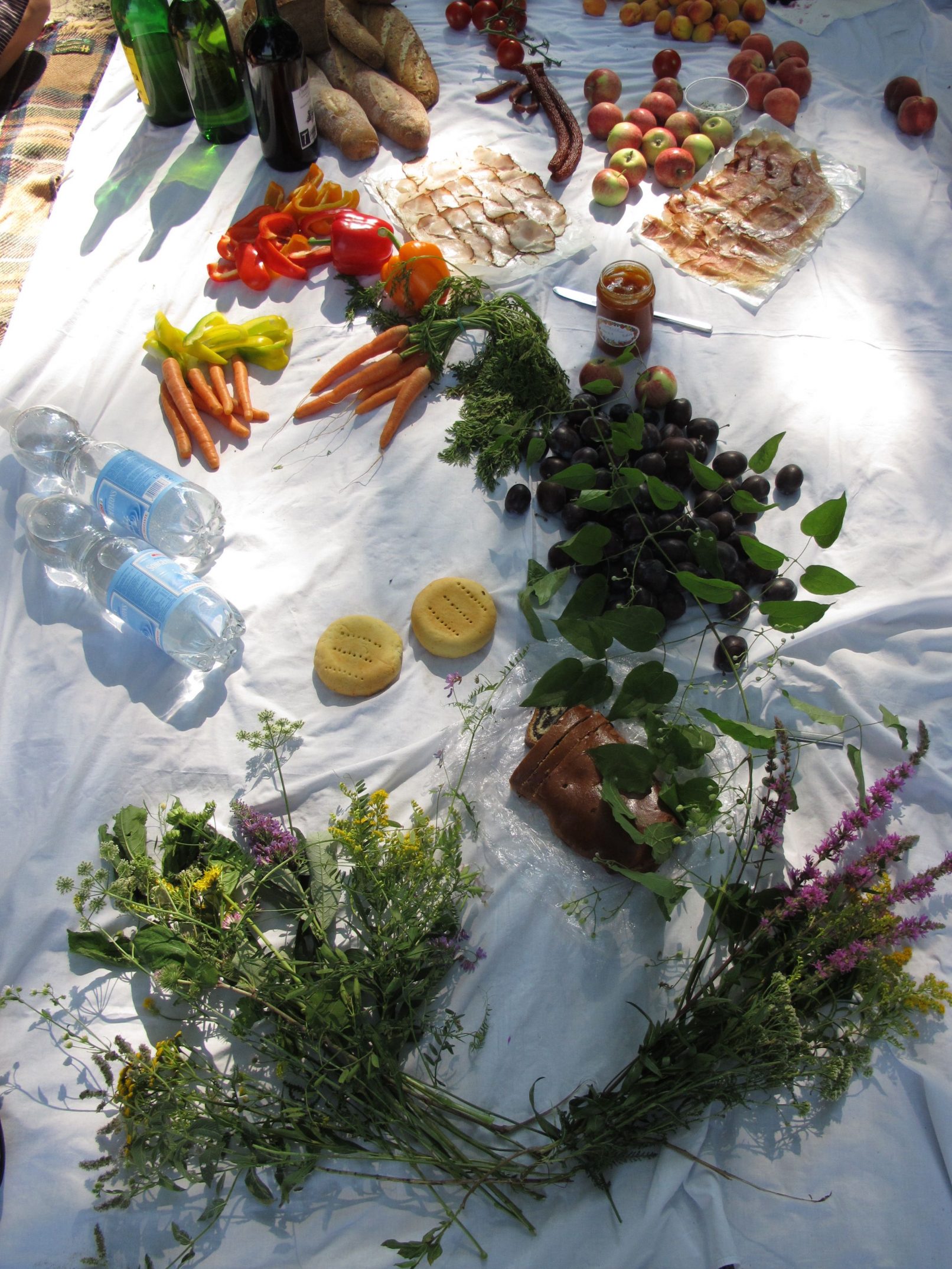 The production money was mostly spent on a wonderful picknick for us and the audience, a bit further down the river, where we found beautful trees. After the meal, we asked all that considered themselves females to go and pick wild flowers in the surrounding woods. They were allowed to only pick two of each type of flower. With the collected flowers, we adorned a rubber tyre. A performer covered himself in mud and was carried of us all together to the river, where he was left to float. He floated about 10 minutes down the river and finally stranded near Strombad Kritzendorf.