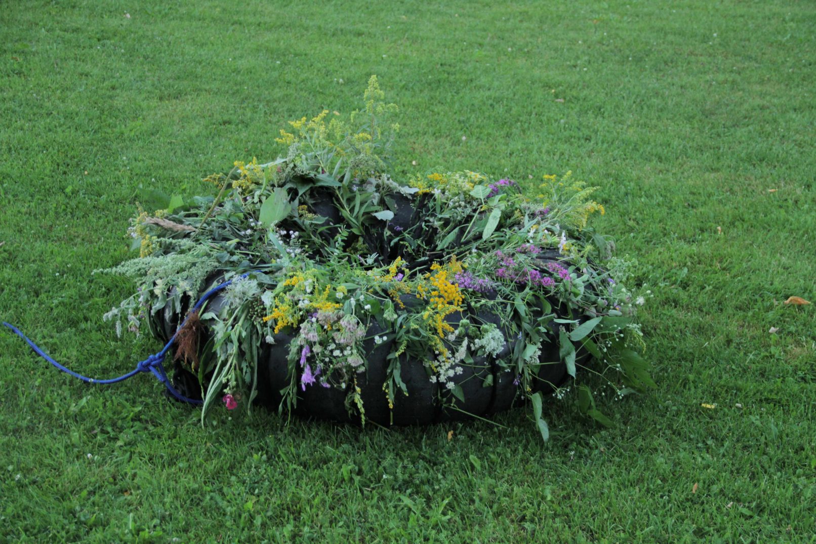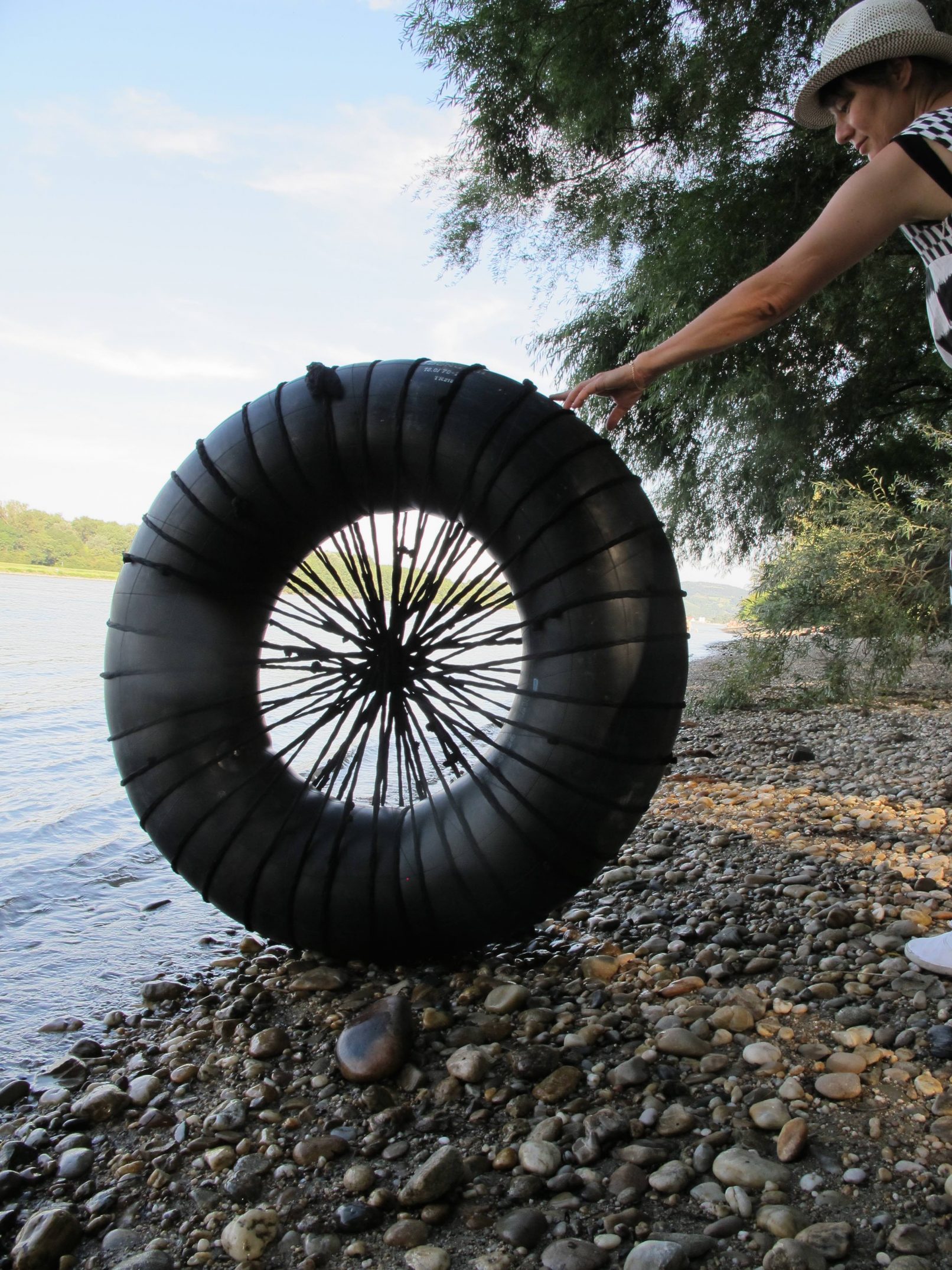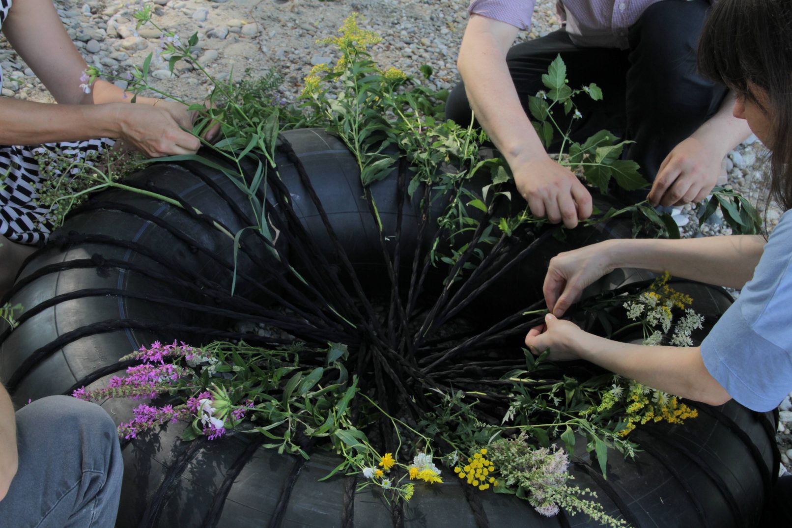 The final sculpture consisted of the tyre with the flowers and an anchor.