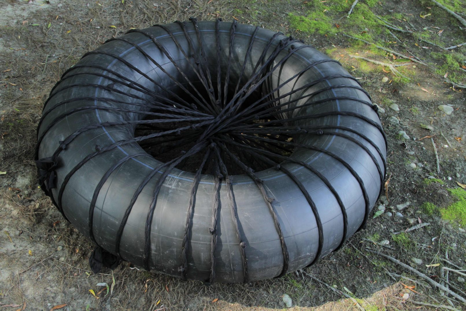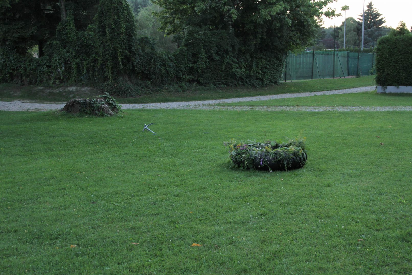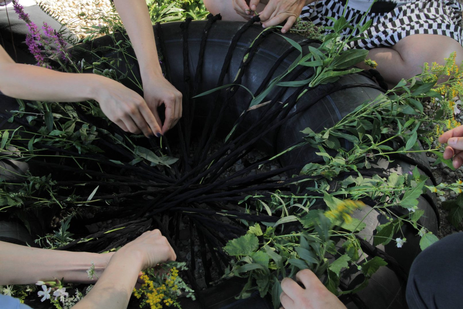 The final sculpture consisted of the tyre with the flowers and an anchor.