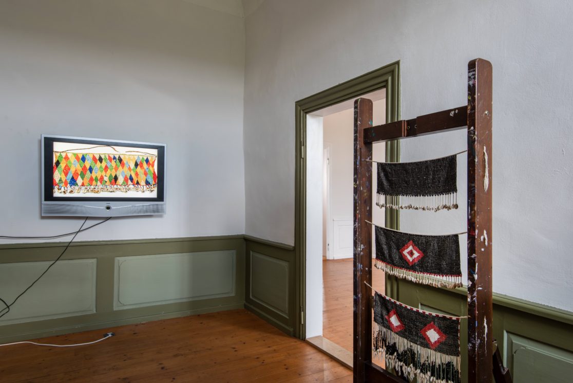 Olivier Guesselé-Garai and Antje Majewski developed the idea for this exhibition after visiting Szczecin’s National Museum, where they found objects originating from Cameroon. Working closely with the director of the Department of Non-European Cultures, Ewa Prądzyńska, they admired a collection of cache-sexe (Pikuran): pieces of beadwork to be worn around the hips from the North of Cameroon. They were also interested in basketry and in other items, and decided to go for a research trip to Cameroon in the spring of 2017.