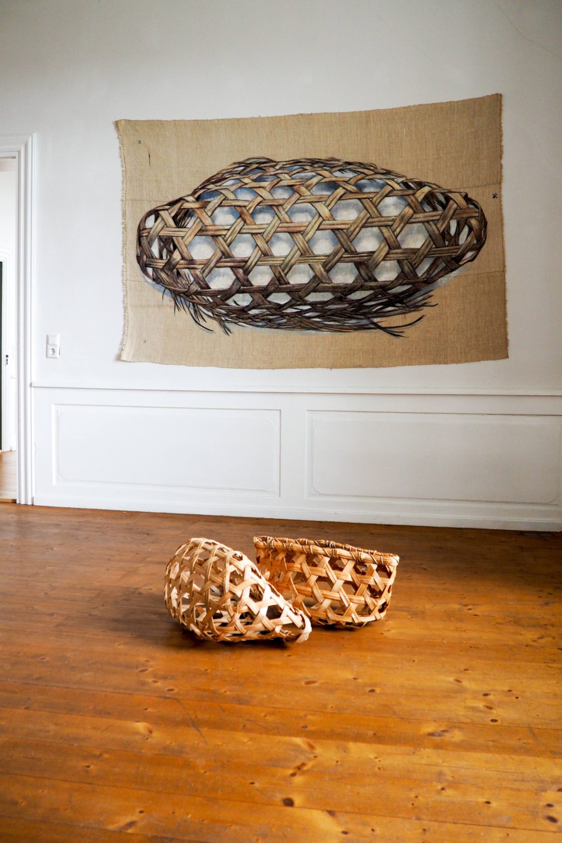 Olivier Guesselé-Garai and Antje Majewski developed the idea for this exhibition after visiting Szczecin’s National Museum, where they found objects originating from Cameroon. Working closely with the director of the Department of Non-European Cultures, Ewa Prądzyńska, they admired a collection of cache-sexe (Pikuran): pieces of beadwork to be worn around the hips from the North of Cameroon. They were also interested in basketry and in other items, and decided to go for a research trip to Cameroon in the spring of 2017.
