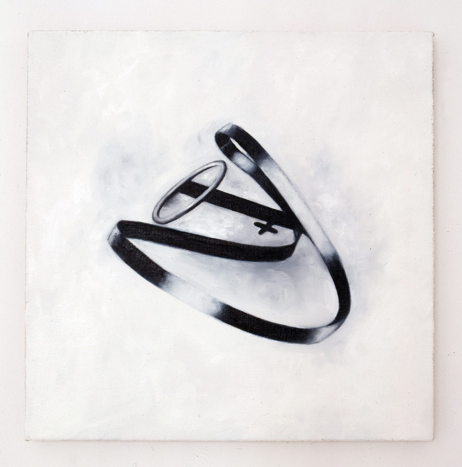 The painting After Katarzyna Kobro, Suspended Construction (2), (1921-22) by Antje Majewski ‘depicts’ a sculpture by Polish constructivist Katarzyna Kobro. Like many of Kobro’s works, the fate of the original artwork from the classical modernist period are unknown, as it was likely to have been destroyed or lost over the years. What remains is a rough drawing of the piece and a photographic reproduction, but the exact dimensions are unknown. Yet the strangely contemporary-looking sculpture – this free-hanging piece that we casually referred to as “diadem” – became a crucial point of departure for this project.
