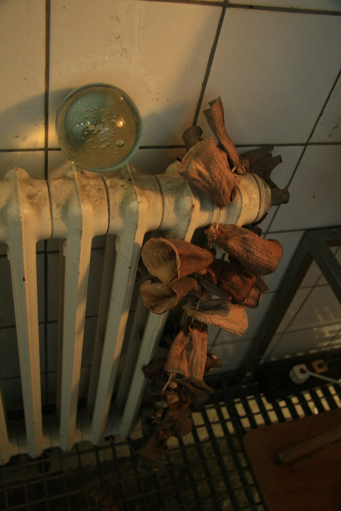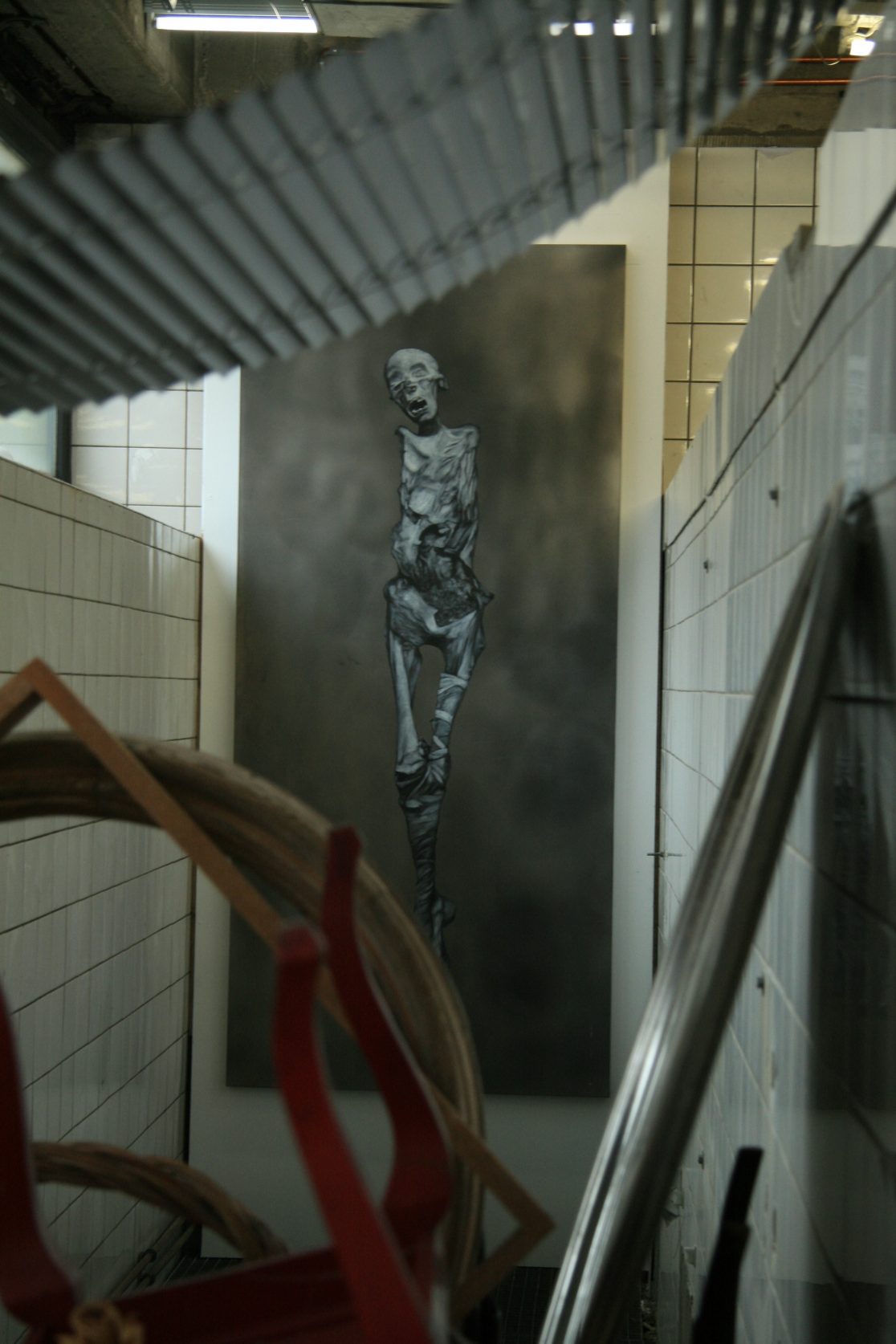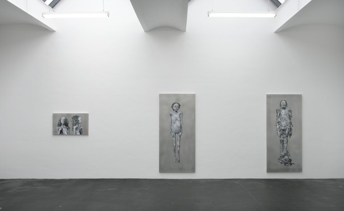 The aluminum “canvases” were chosen in the hope that they would survive better than canvas. The colors that were used for the paintings are lead white, carbon black, and a fake “mummy brown.” “Mumia egyptica vera” was a pigment made of ground mummy limbs that remained very popular with painters until the nineteenth century, partly because it contained natural asphalt (bitumen), which made this brown very fluid and paintable. Other ingredients, such as linen oil or dammar, were already in use by the Egyptians for both the conservation of bodies as well as paintings, and we still paint with them today. Grafton Elliot Smith, who was the founder of “Hyperdiffusionism,” might have been delighted by the idea that not only did painters’ recipes diffuse from ancient Egypt into modern Germany, but also the Realism first invented by Akhenaton (or his wife Nefertiti), whose (probable) skull can be seen on this page.