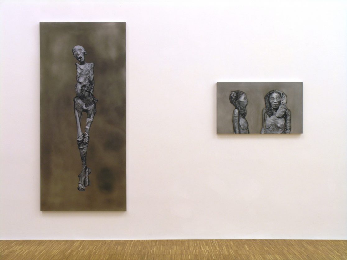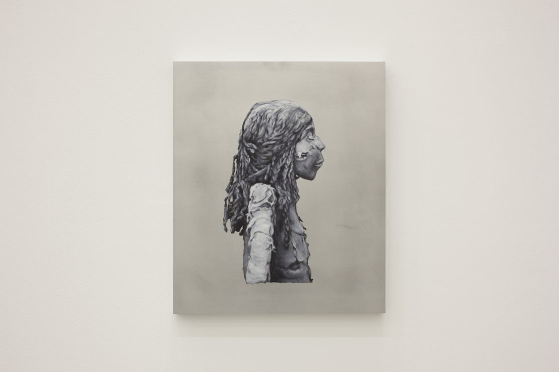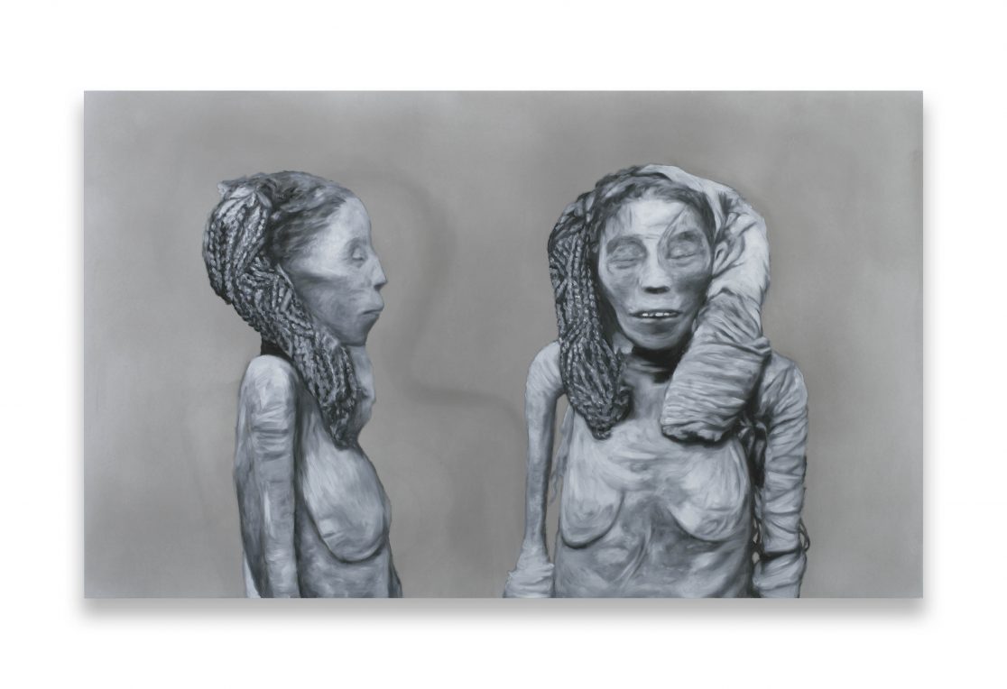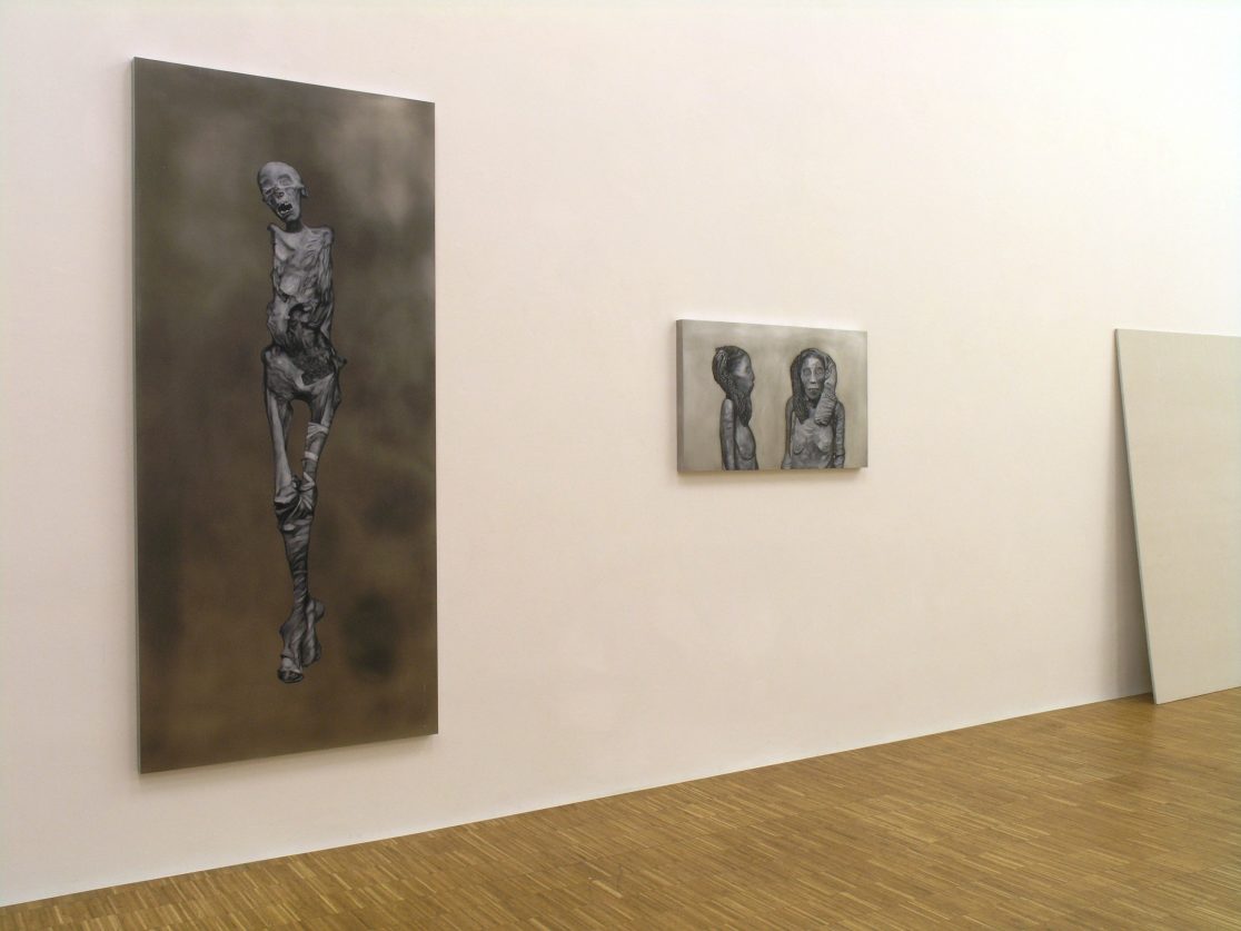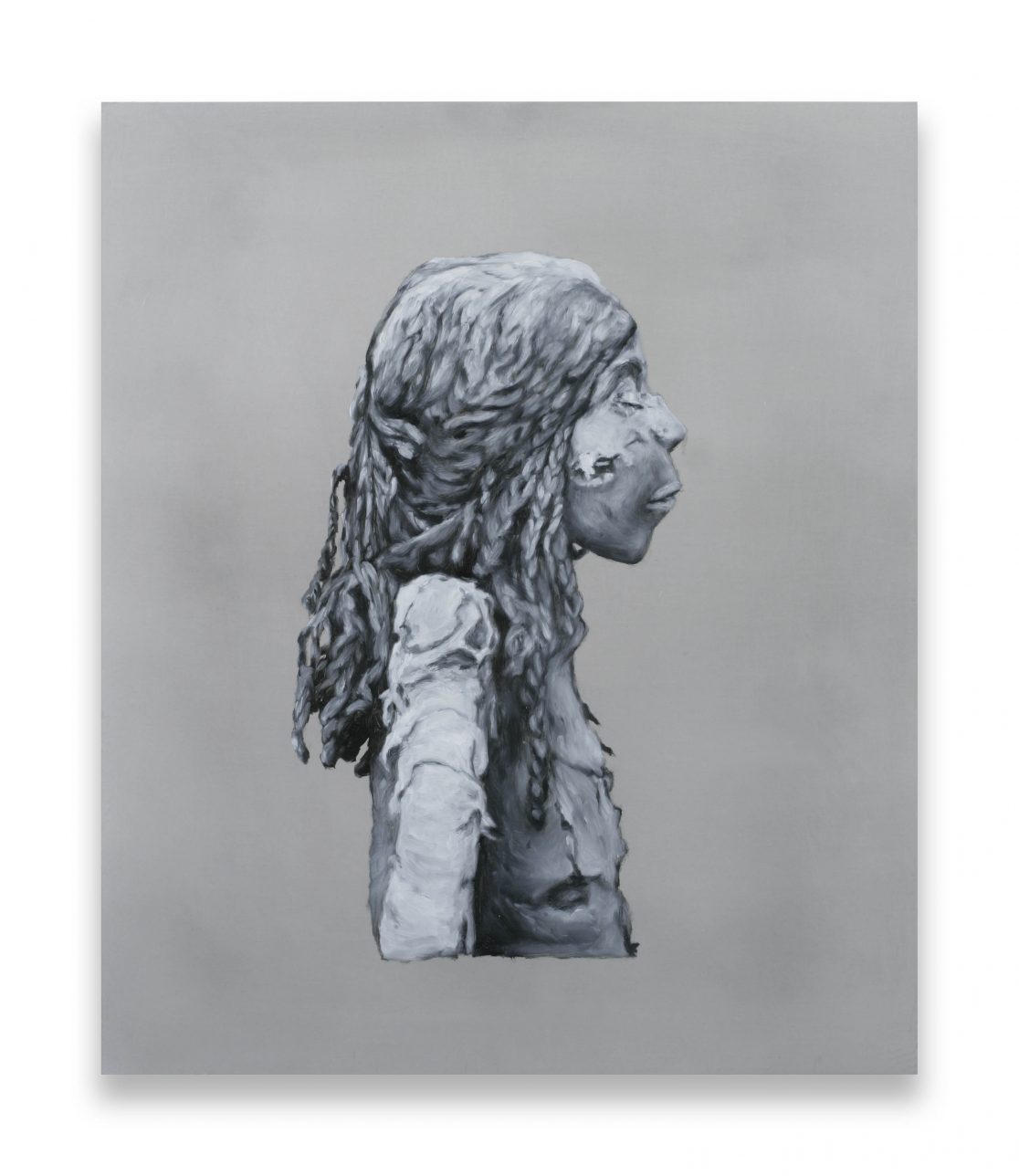 This group of paintings attempts to “remummify” the stunning black-and-white photographs, mostly taken by the Egyptologist Emile Brugsch, in Grafton Elliot Smith’s Catalogue Général des Antiquités Ég yptiennes du Musée du Caire (1912). The Egyptians had wanted to conserve themselves for eternity; by bringing them to the light of day again, the Egyptologists of the late nineteenth century set the same wheel of destruction in motion again that the embalmers had tried to halt.