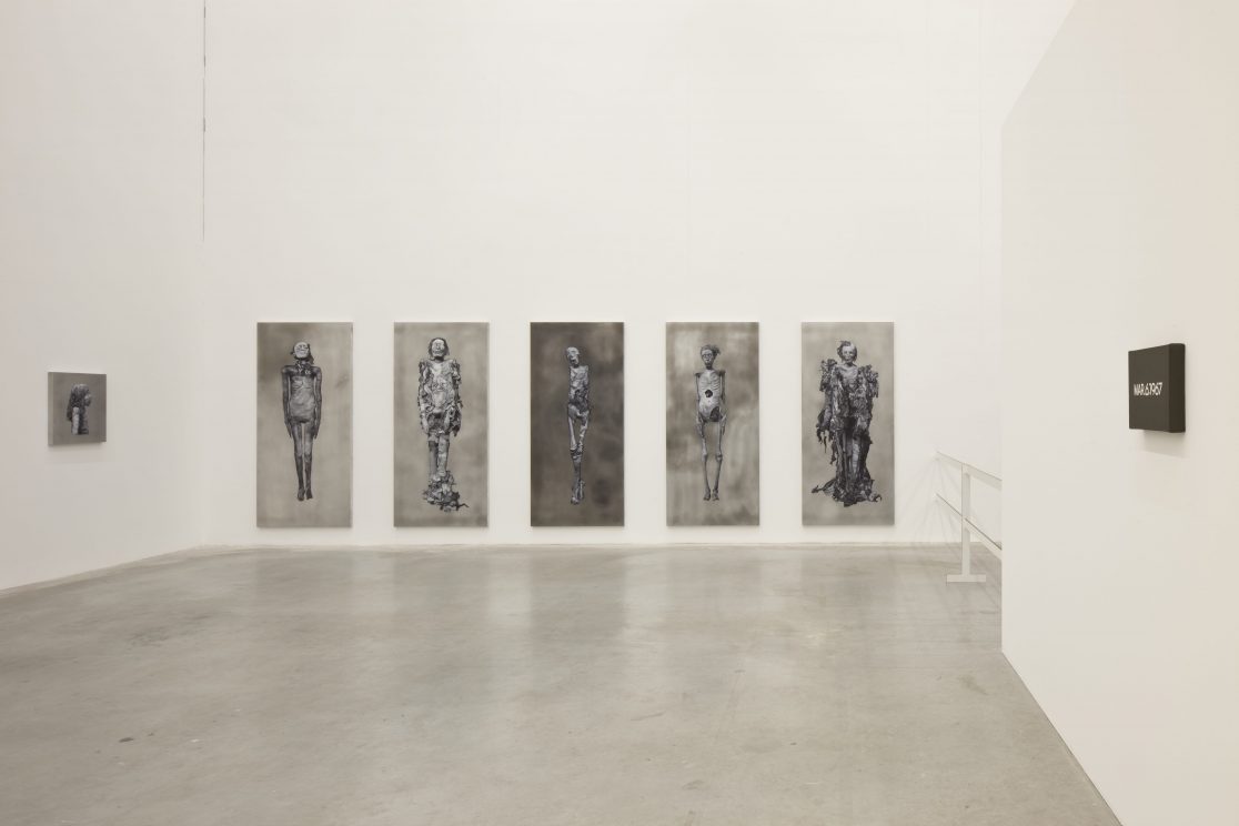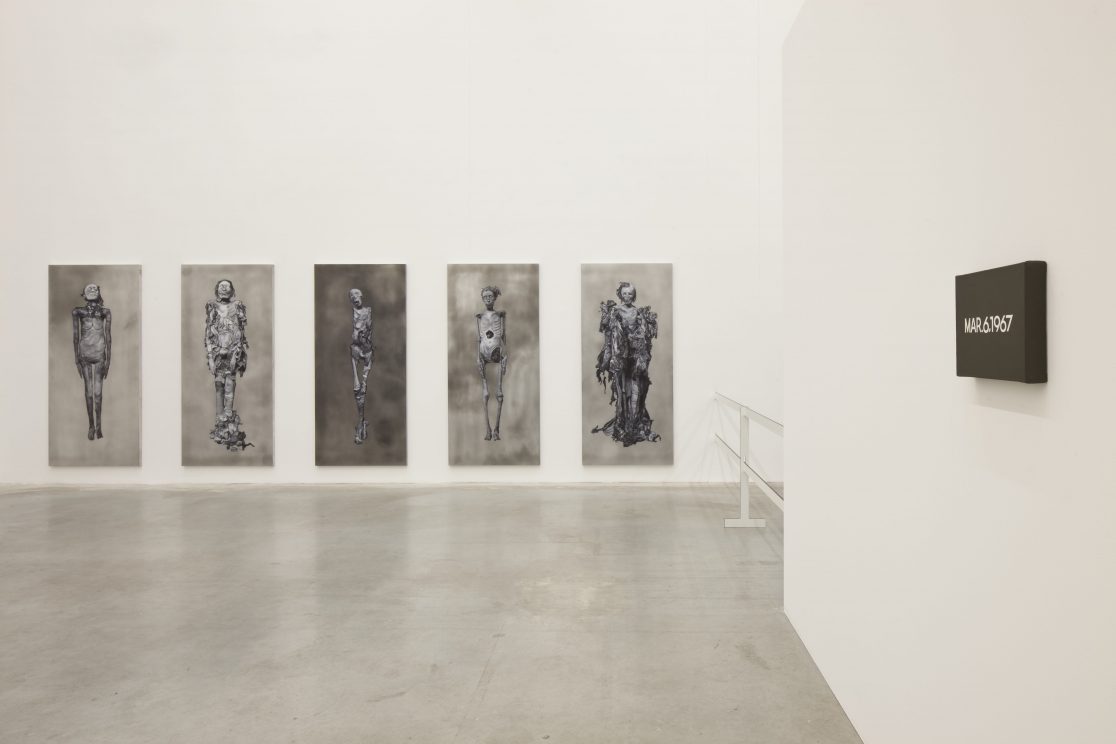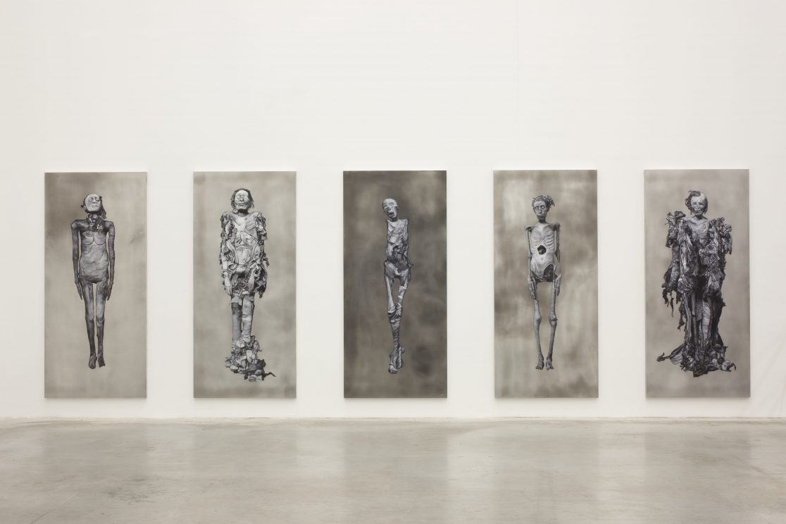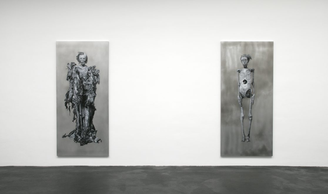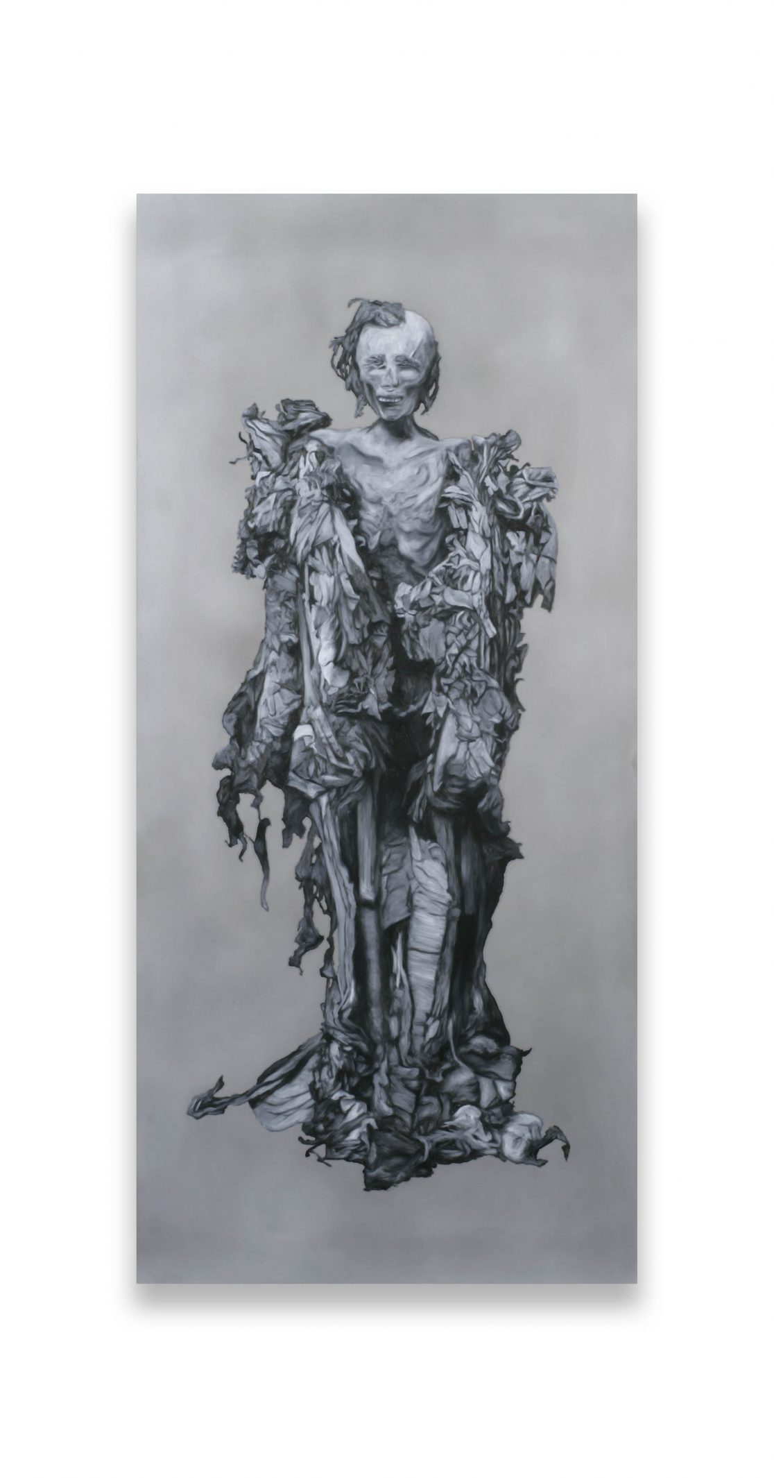 This group of paintings attempts to “remummify” the stunning black-and-white photographs, mostly taken by the Egyptologist Emile Brugsch, in Grafton Elliot Smith’s Catalogue Général des Antiquités Ég yptiennes du Musée du Caire (1912). The Egyptians had wanted to conserve themselves for eternity; by bringing them to the light of day again, the Egyptologists of the late nineteenth century set the same wheel of destruction in motion again that the embalmers had tried to halt.